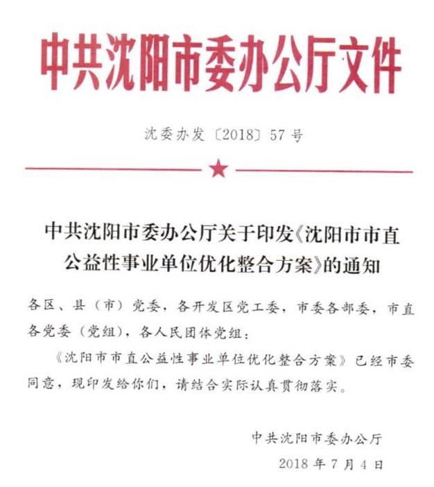 據(jù)《沈陽市市直公益性事業(yè)單位優(yōu)化整合方案》(沈委辦發(fā)〔2018〕57號),將組建“沈陽市市場監(jiān)管事務(wù)服務(wù)與行政執(zhí)法中心(沈陽市檢驗檢測中心)”,市質(zhì)監(jiān)局所屬的沈陽標準化研究院(沈陽產(chǎn)品標識質(zhì)量監(jiān)督檢驗院,正處級)、沈陽特種設(shè)備檢測研究院(沈陽市鍋爐壓力容器監(jiān)督檢驗所,正處級)、沈陽市產(chǎn)品質(zhì)量監(jiān)督檢驗院(沈陽產(chǎn)品質(zhì)量監(jiān)督檢驗研究院,正處級)、沈陽計量測試院(正處級)等單位整合為沈陽市市場監(jiān)管事務(wù)服務(wù)與行政執(zhí)法中心(沈陽市檢驗檢測中心),為擬組建的市市場監(jiān)管局所屬事業(yè)單位。